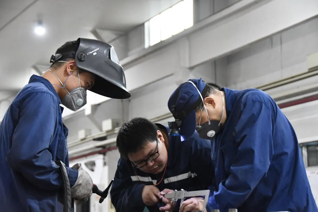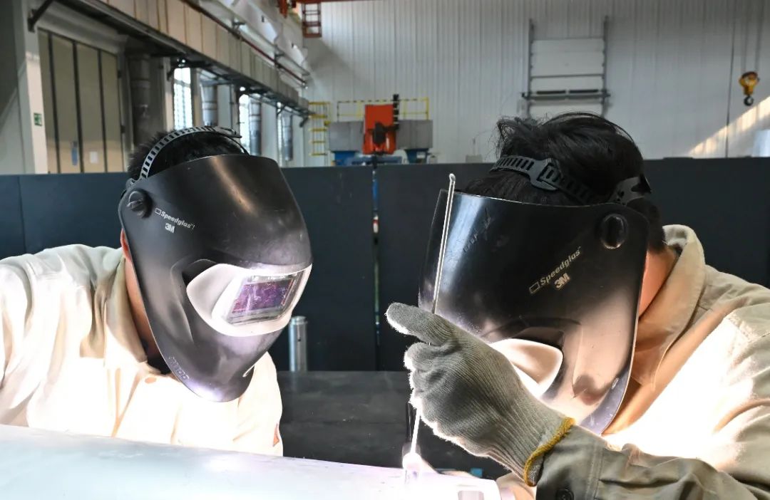 近日,紅陽公司特種制造部集中“火力”,對一產(chǎn)品核心部件發(fā)起“沖鋒”。為應(yīng)對該部件焊縫寬長、焊接點(diǎn)位多、焊后易變形等難點(diǎn),焊工班及鉗工班開展合作,根據(jù)產(chǎn)品性能結(jié)構(gòu)特點(diǎn)進(jìn)行“2+2+1”排班,有力保障全工序內(nèi)焊接質(zhì)量高度可控,同時進(jìn)一步降低周轉(zhuǎn)時間,提高生產(chǎn)效率。圖為職工正在進(jìn)行焊接、鈑金加工。(圖文/胡卓立)