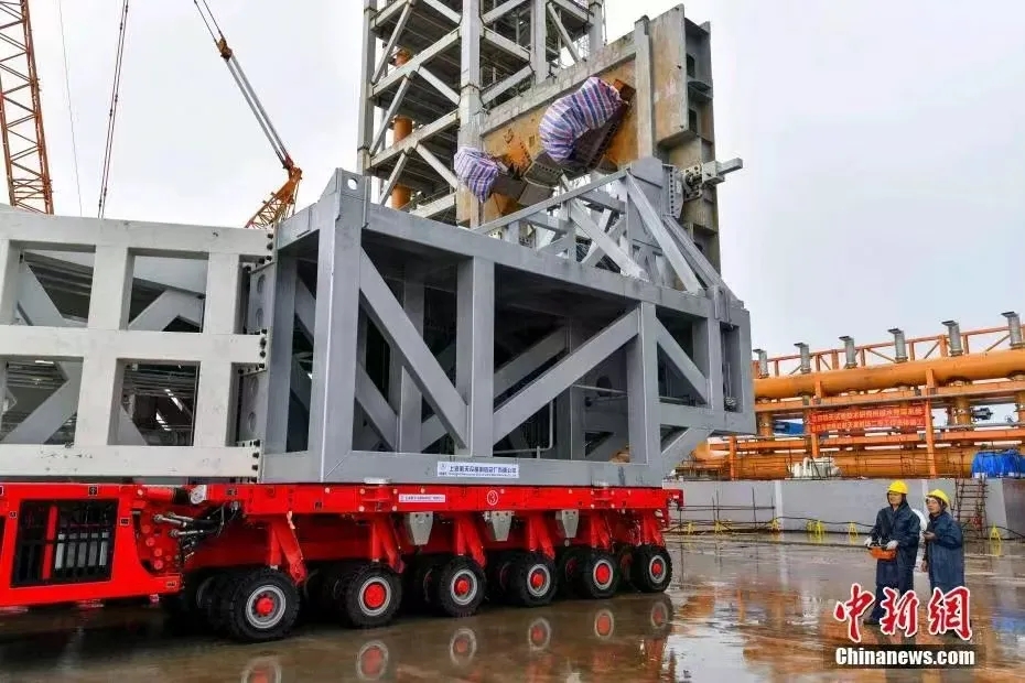 長征十二號火箭是我國首型4米級運載火箭,全長約62米,起飛質(zhì)量約430噸。配套的起豎系統(tǒng)高70米、重240噸。該型火箭為商業(yè)航天而生,屬于“大高個”、大直徑、大推力,實現(xiàn)了火箭運載能力的大幅提升。在運輸過程中,三輛自行式模塊運輸車呈“品”字形結(jié)構(gòu)擺放,分別位于起豎系統(tǒng)的下方,穩(wěn)穩(wěn)地托舉住火箭及起豎系統(tǒng),實現(xiàn)全箭水平轉(zhuǎn)運。