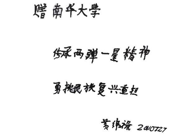 2011年,即將走到生命盡頭的黃緯祿反復(fù)進(jìn)出醫(yī)院。時(shí)至7月,病情嚴(yán)重的黃緯祿已經(jīng)完全臥床,此時(shí)南華大學(xué)組織的一個(gè)“兩彈一星”夏令營到訪北京,要訪問“兩彈一星”功勛獎(jiǎng)?wù)芦@得者,但約定的幾位獲獎(jiǎng)?wù)呔蚋鞣N原因無法到場。黃緯祿在推辭的過程中了解到組織者的難處,不顧病重依然同意接受采訪。為了滿足師生們迫切期盼得到他題字的愿望,黃緯祿在女兒黃道群的幫助下,顫顫巍巍寫下了此生絕筆——傳承“兩彈一星”精神,勇挑民族復(fù)興重?fù)?dān)。