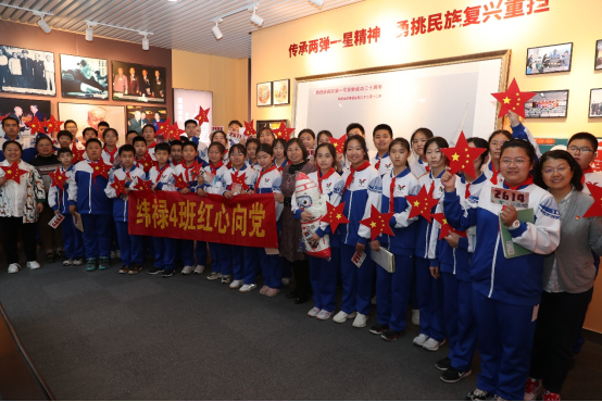 2023年中國航天日到來之際,來自北京市育英小學(xué)航天校區(qū)“緯祿4班”的40余名師生懷著無比敬仰的心情走進(jìn)黃緯祿精神講堂,帶著對(duì)未來的無限憧憬,在黃緯祿院士雕像前共同唱響歌曲《紅星閃閃》。