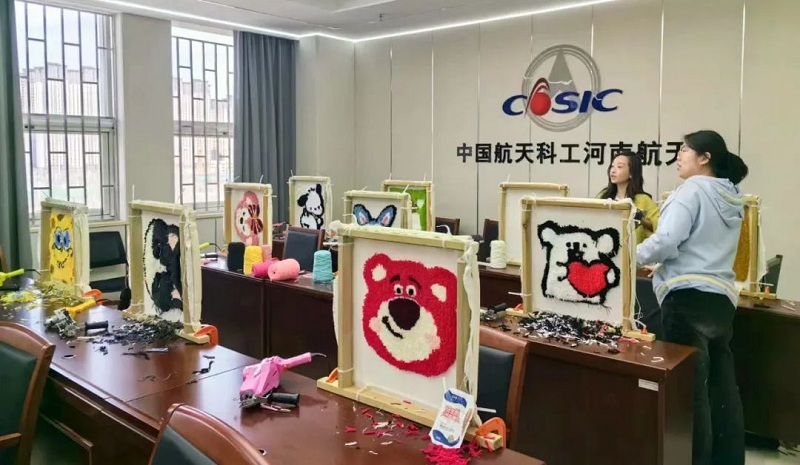 3月8日,為增加節日氣氛,展現新時代巾幗風采,河南航天本部工會開展了慶祝“三八”國際婦女節簇絨毛毯DIY活動。隨著機器響起,映入眼簾的是女職工拿起簇絨槍在一張簇絨布上扎扎戳戳。在老師的指導下,大家逐漸找到訣竅,投影描繪、挑選毛線、運作簇絨槍、刷乳膠貼布、修整鏟平……簇絨槍“突突”的聲音和大家驚喜歡快的談笑聲交織著,奏出一曲明快奔放地交響樂。經過不懈的努力,心儀的圖案也一點點變成柔軟的展現,琳瑯滿目、豐富多彩。