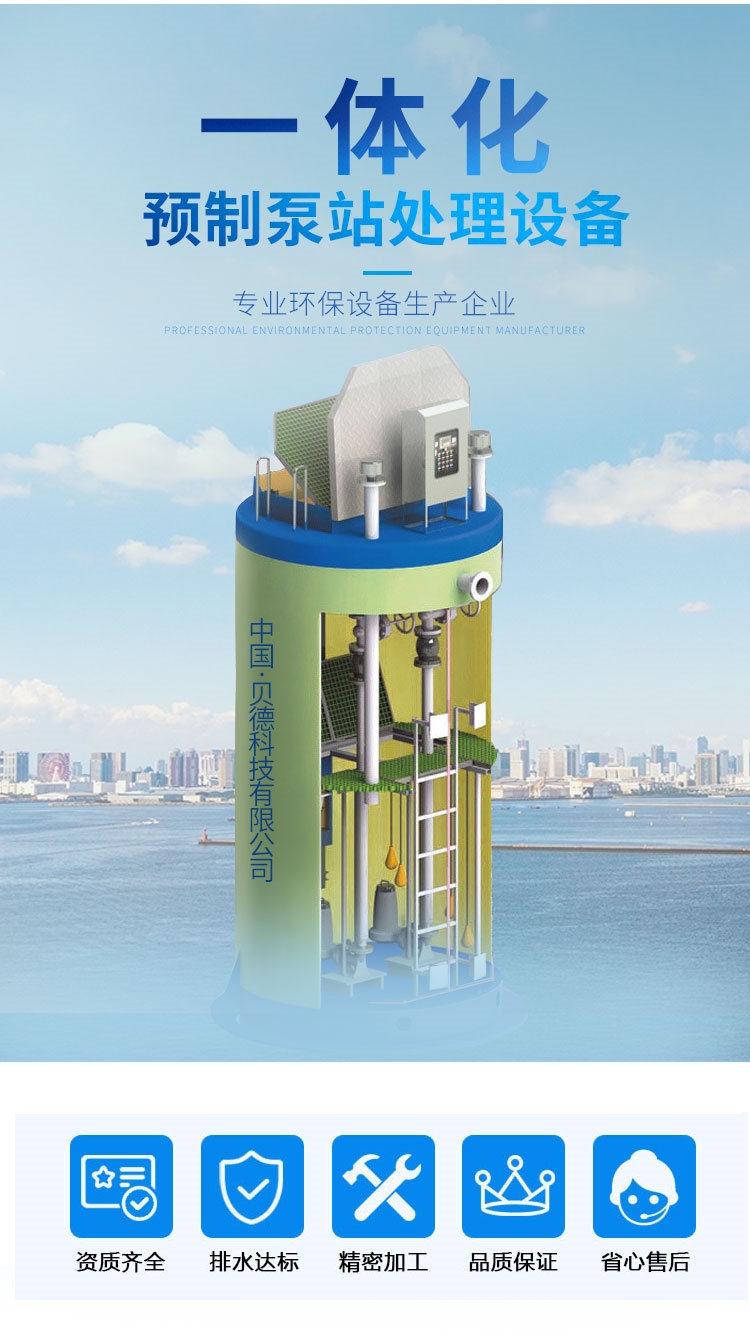 一體化預(yù)制式泵站是一款專為解決城市雨水收集和排澇以及城鎮(zhèn)污水提升而設(shè)計(jì)的新型污水處理設(shè)備。泵坑設(shè)計(jì)帶有一體化的排放連接。泵站為地埋式、泵站主體由泵站筒、潛水泵、耦合裝置、管道、閥門、液位傳感器、控制系統(tǒng)、粉碎型格柵和通風(fēng)系統(tǒng)等部件組成。是一種使用方便,質(zhì)量可靠,土建工作少,成本較低的新型一體化泵站設(shè)備,容積優(yōu)化是其顯著的特征,可以作為中小型混凝土泵站的替代品。
